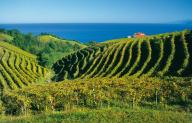 Los viñedos que se funden con el paisaje montañoso del interior de Euskadi